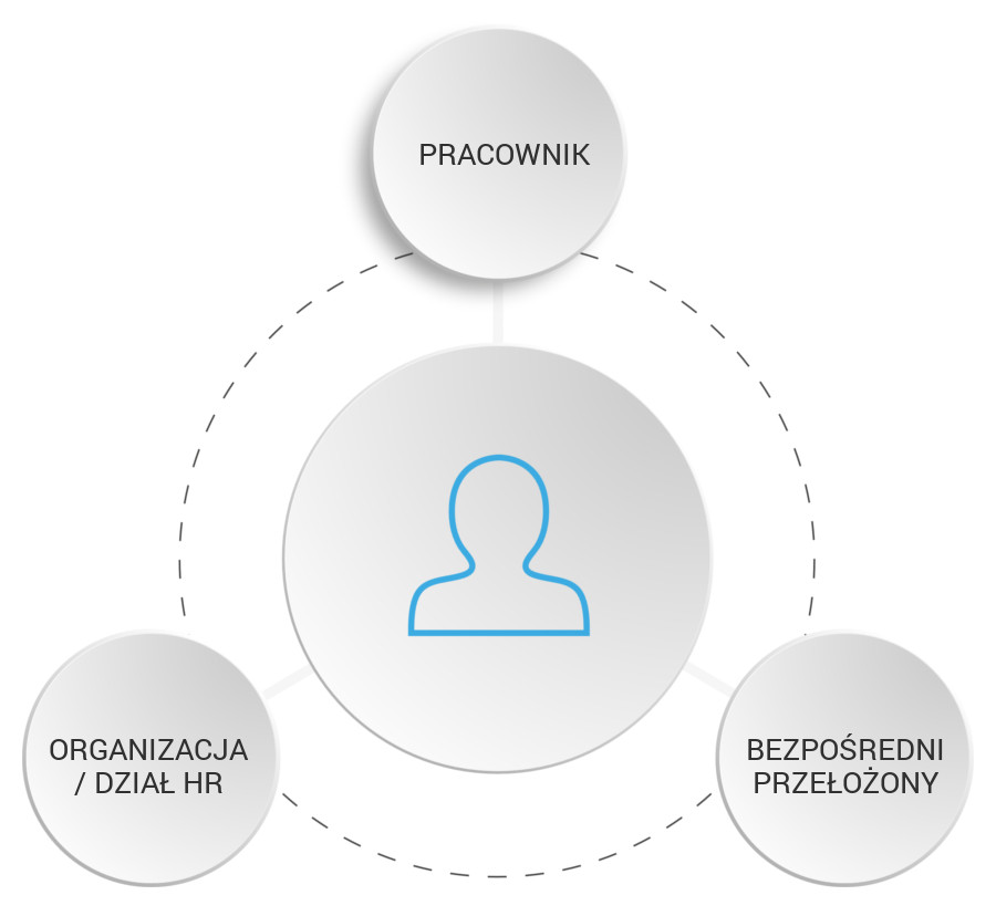 ✓ dostarczenie narzędzi dla przełożonego, dzięki któremu ma możliwość podsumowania minionego roku w kontekście danego pracownika oraz porozmawiania z pracownikiem o ważnych dla niego (pracownika) obszarach, które jeszcze nie zostały poruszone albo wymagają dalszego omówienia.